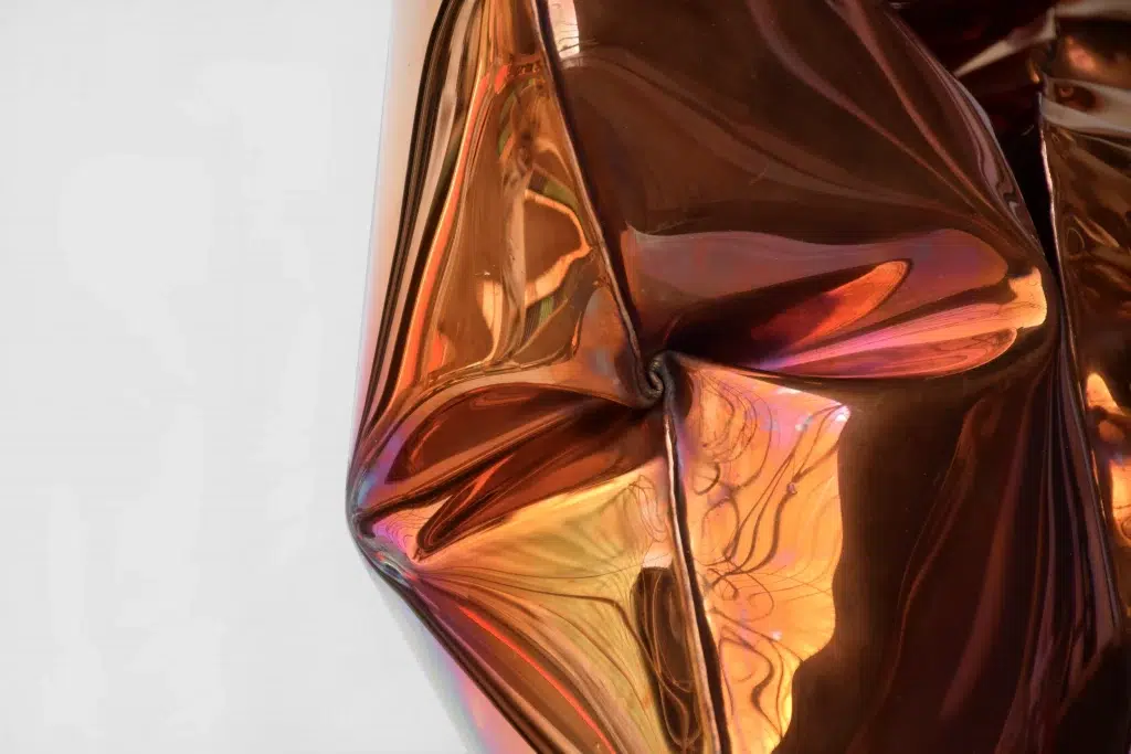 Cette attention portée à la transformation de la matière se prolonge dans son travail de la couleur de chauffe – obtenue en chauffant la tôle à la flamme –, devenu un aspect central et distinctif de sa pratique. Ici, la couleur n’est jamais appliquée après coup : elle naît directement du dialogue avec la flamme, le temps et la température. Cette technique accélère l’oxydation du métal, permettant d’obtenir des nuances allant du gris perlé au fuchsia, en passant par le jaune ou encore l’orange. Chaque teinte résulte d’un instant maîtrisé, d’une montée en chaleur précise où le métal révèle ses réactions internes. Chaque nuance correspond à un certain seuil thermique, et chaque métal révèle sa propre gamme chromatique, offrant une multitude de variations possibles pour une seule pièce.