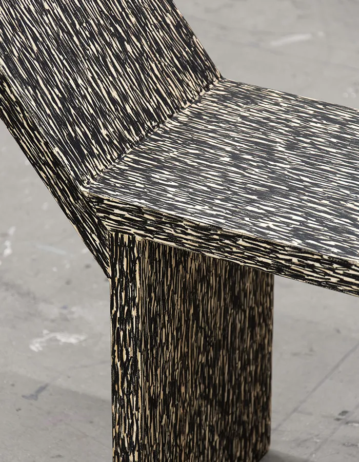 Adrian Bursell et Siri Svedborg sont deux designers attirés par l’expérimentation. Leur dernière collection de meubles et luminaires, Crayon Pine, est entièrement conçue à partir de bois. Jusqu’ici, rien d’anormal ! En s’approchant des pièces, le motif devient plus clair : les lignes répétitives qui colorent les pièces sont tracées à l’aide de crayons de cire. Le mouvement rythmique du geste offre un motif unique de détails aléatoires et expérimentaux. Loin d’une approche industrielle de l’objet d’ameublement, les deux designers misent sur la narration et la valeur artisanale du processus de création. Ils créent une confusion entre les principes nobles de l’artisanat et la qualité d’un simple geste de la main imprécis et aléatoire. Ils s’inspirent de l’art populaire traditionnel suédois allmoge, qui consiste à utiliser des outils et matières très accessibles : la colle, la peinture, la tempera à l’œuf et les huiles, pour personnaliser les objets et les meubles.
