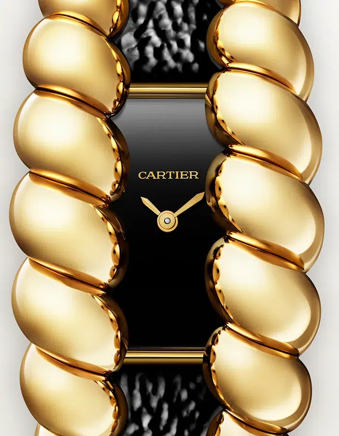 Con el reloj Trenza, Cartier celebra su legado joyero con un sutil homenaje a Jeanne Toussaint, la primera mujer en dirigir la dirección creativa de la Maison en 1933. Con su entrelazado de oro y diamantes, este reloj se distingue por su imponente estructura trenzada dispuesta a ambos lados de la esfera. Disponible en varias versiones, Trenza encarna el ingenio creativo de Cartier: un reloj joya donde el dominio técnico se combina con una elegancia singular, desafiando los códigos de la relojería tradicional.