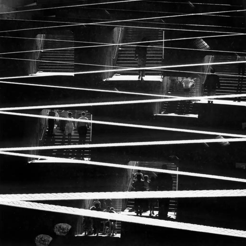 « La photo est si ancrée en moi, je ne peux guère imaginer faire autre chose. Elle est mon alter ego, l’autre de mon dialogue intime. » Ray K. Metzker (1931-2014) est un photographe moins connu que ses pairs, mais il semble bien parti aujourd’hui pour quitter l’ombre pour la lumière. Ce virtuose, originaire de Milwaukee, dans le Wisconsin, s’est formé à l’Institute of Design de Chicago, anciennement appelé New Bauhaus. Il s’est inspiré du travail d’Henri Cartier-Bresson, de William Klein ou de W. Eugene Smith, a étudié sous le professorat de Harry Callahan et d’Aaron Siskind, et a eu au démarrage de sa carrière l’attention d’Edward Steichen, alors directeur du département photographique du MoMA de New York. Au fil du temps, il s’est fait un nom avec ses photographies d’avant-garde de paysages urbains en noir et blanc, mais aussi ses composites, ses photomontages et ses superpositions de négatifs.