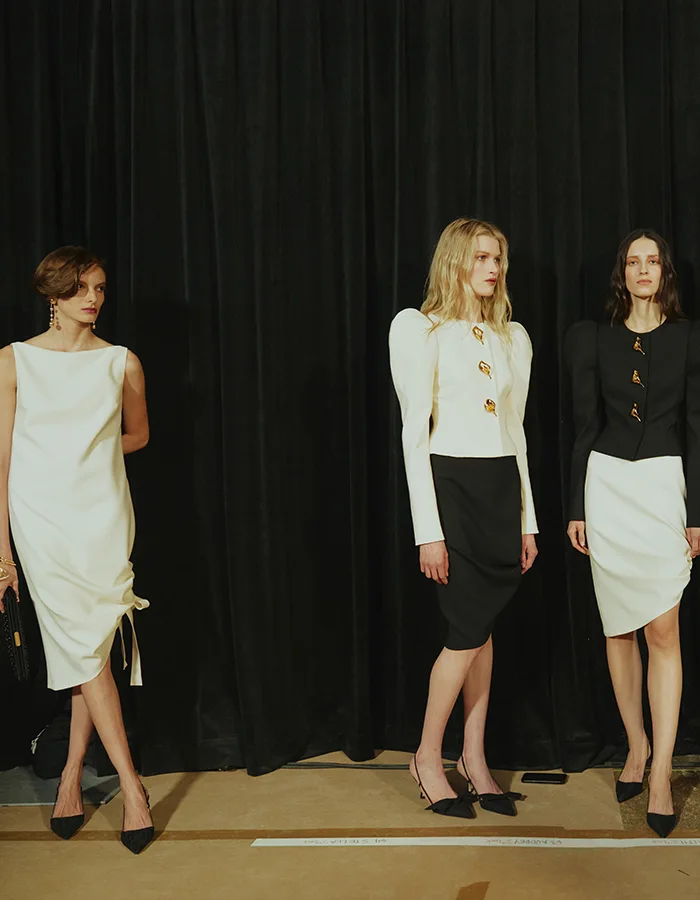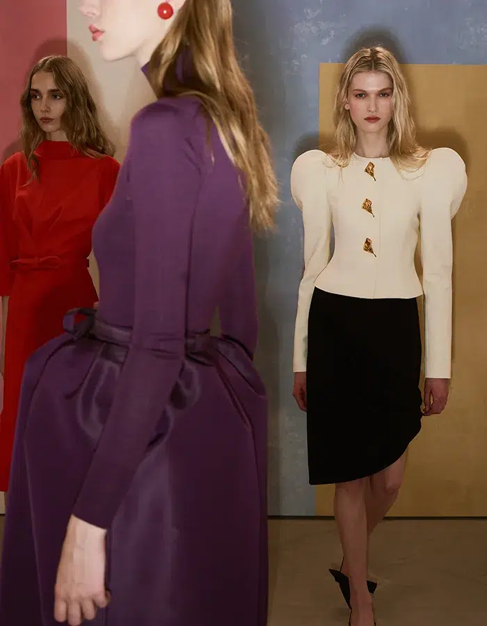 Artistes, muses, mécènes, galeristes, commissaires d’exposition ou encore collectionneuses, des femmes ont inspiré le dernier défilé Carolina Herrera, qui s’est tenu le 12 février dans le quartier new-yorkais de Meatpacking District. Parmi elles, la peintre Amy Sherald, à qui l’on doit le portrait de Michelle Obama pour la Smithsonian National Portrait Gallery, l’artiste franco-américaine Anh Duong, la photographe Ming Smith, la sculptrice Rachel Feinstein, la peintre Eliza Douglas, ou encore la galeriste Hannah Traore. Une autre figure de l’art semble également habiter cette collection, la mécène et collectionneuse d’art Peggy Guggenheim, notamment à travers des capes en faille de soie, typiques du style de cette personnalité américaine.
