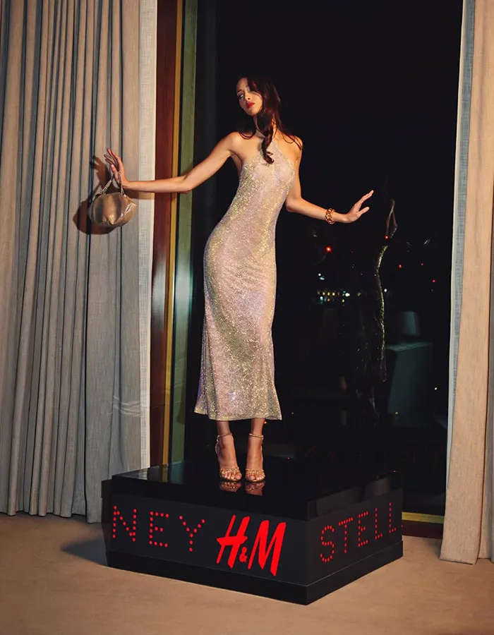 La campagne, théâtrale et assumée, met en scène les pièces comme de véritables objets de désir, posés sur des socles lumineux qui rappellent l’univers du spectacle et de la performance. Cette mise en scène accentue l’idée d’une mode forte et confiante. À travers cette collaboration, Stella McCartney parvient à rendre accessible une esthétique sophistiquée, tout en réaffirmant sa capacité à conjuguer féminité, modernité et conscience contemporaine dans un cadre grand public.