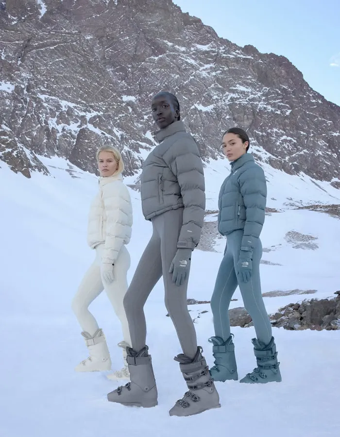 La collaboration entre The North Face et SKIMS prend la forme d’une rencontre stratégique entre performance technique et esthétique body-conscious. D’un côté, l’expertise outdoor de The North Face, reconnue pour ses vêtements conçus pour les environnements extrêmes ; de l’autre, l’ADN de SKIMS, centré sur la seconde peau, le confort et la mise en valeur du corps. Ensemble, les deux marques proposent une vision renouvelée du vestiaire hivernal, où fonctionnalité et désir se rejoignent.