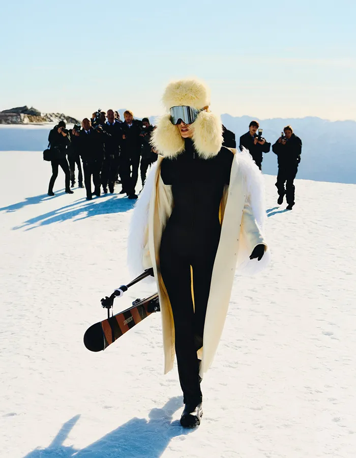 La collection joue sur les contrastes : volumes protecteurs et lignes sculpturales, palettes sobres ponctuées de touches lumineuses, références alpines réinterprétées avec une élégance presque cinématographique. Les silhouettes, pensées pour le mouvement comme pour l’image, brouillent volontairement les frontières entre performance, lifestyle et mode de luxe.