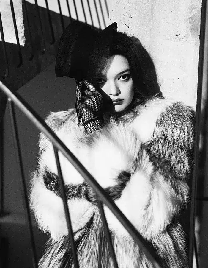 Conçu comme un édito mode sous la direction artistique de Flora di Carlo, ce court métrage met en lumière les fourrures d’archives Yves Salomon dans une mise en scène saisissante, où chaque pièce devient une extension des émotions des personnages. Symbole de luxe et de protection, la fourrure se fait ici carapace, marque de domination et de désir de contrôle, tout en révélant une fragilité sous-jacente. Le choix du noir et blanc confère à ce film une atmosphère intemporelle, glaciale et austère. La froideur de l’image, l’absence de couleur accentuent la gravité du moment et la distance émotionnelle qui s’installe entre les deux protagonistes. Le contraste entre la lumière et l’ombre crée une tension visuelle qui accompagne le duel muet, transformant chaque geste en une chorégraphie précise et calculée. La bande-son, signée par Simon Delacroix, alias Toxic Avenger, rythme cette danse hypnotique avec une intensité qui souligne le crescendo dramatique de la partie. Les notes, tantôt feutrées, tantôt percutantes, enveloppent la scène d’une aura mystérieuse et envoûtante, traduisant en musique les mouvements des pièces et les battements fébriles des cœurs qui s’affrontent. La dernière image, une pièce brisée jonchant le sol noir et blanc, offre un dernier tableau poignant. La femme, seule, dans une lumière tamisée, perdue dans ses pensées, semble emportée par le poids de cette victoire qui n’a finalement rien de glorieux. La victoire n’est-elle pas parfois une autre forme de défaite ? Un fardeau que l’on porte sans jamais pouvoir s’en débarrasser ?