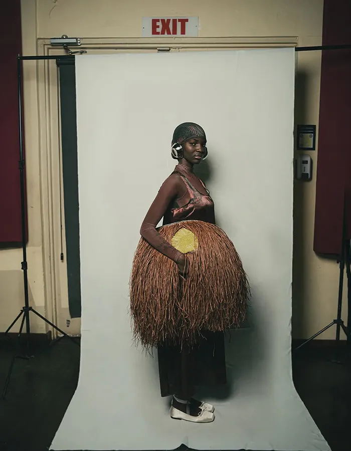 Ses collections naissent de cette tension féconde : robes de bal volumineuses et coiffes théâtrales côtoient bombers, pantalons cargo et talons effilés. Entre maximalisme assumé et allure cool, Lake dessine une silhouette hybride qui exprime toute la complexité de son identité. « Le travail doit provoquer une émotion, bonne ou mauvaise », affirme-t-elle. Une intention qui s’ancre dans la culture jamaïcaine, où fierté, bravoure et provocation se mêlent sans complexe.