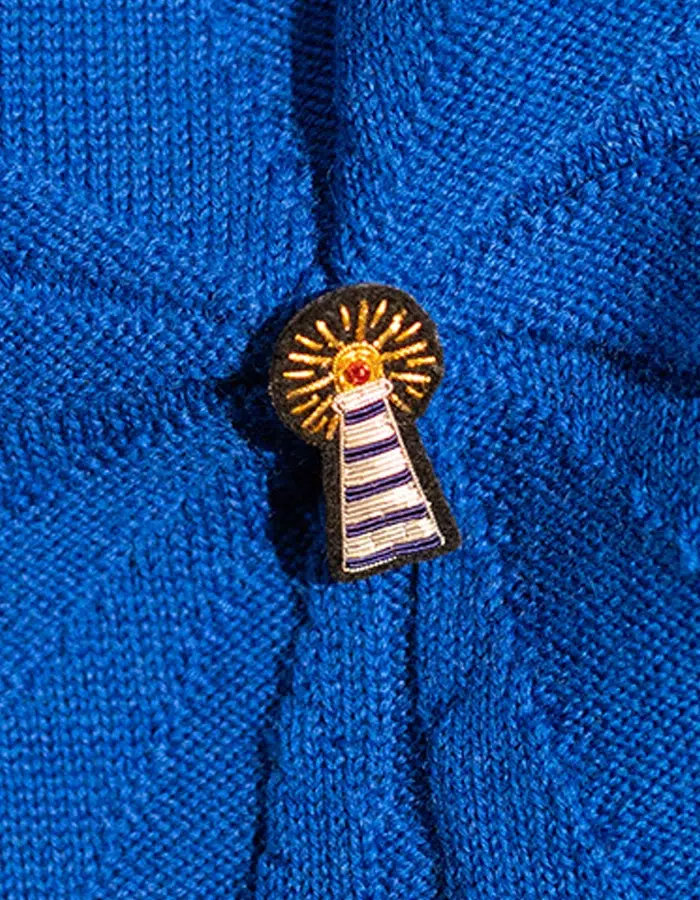 Pour leur troisième collaboration, Saint James et Macon & Lesquoy unissent une fois de plus leurs savoir-faire exceptionnels dans la création d’un pull inspiré de l’univers marin et des traditions artisanales françaises. Cette pièce, baptisée Phare Ouest, célèbre l’héritage maritime des ateliers normands de Saint James et l’originalité des broderies de Macon & Lesquoy. Conçu pour la saison automne-hiver 2024-2025, ce pull 100 % laine vierge arbore un bleu éclatant, sublimé par une texture en relief évoquant les faisceaux lumineux d’un phare. L’illustration brodée à la main par les créatrices de Macon & Lesquoy représente un phare, symbole fort du patrimoine maritime, qui vient ajouter une touche ludique et unique à cette pièce. Le pull Phare Ouest, à la fois élégant et riche en histoire, est disponible en édition limitée depuis novembre sur les sites des deux maisons et dans une sélection de points de vente.
