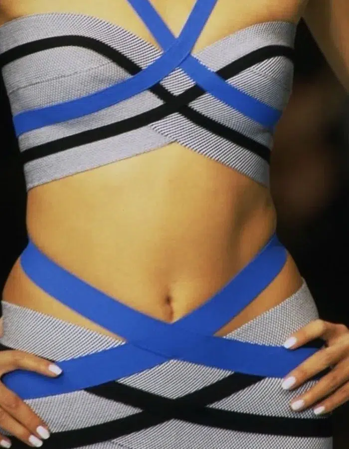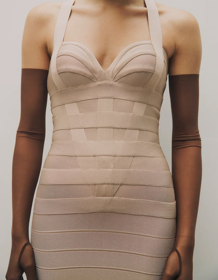 Le come-back est aussi encouragé par des marques comme House of CB qui réinterprètent le modèle avec des coupes plus inclusives et des palettes plus douces ou inattendues comme le marron chocolat ou le rose goyave. Et chez Hervé Léger même, sous la direction de Michelle Ochs, les collections prêt-à-porter pour 2025 mêlent le bandage signature à des jerseys drapés, des pastels vibrants et des détails couture revisités.