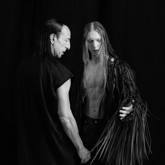 Le défilé du styliste américain s’est transformé en procession aquatique sur le parvis du Palais de Tokyo. Les mannequins marchaient dans l’eau, entre apocalypse et célébration, portés par la voix de Grace Slick. Cuirs sculptés, harnais fétichistes et silhouettes noires : tout vibrait entre chaos et beauté. Rick Owens a encore une fois élevé la mode au rang de rituel, sombre, mystique, mais profondément humain.