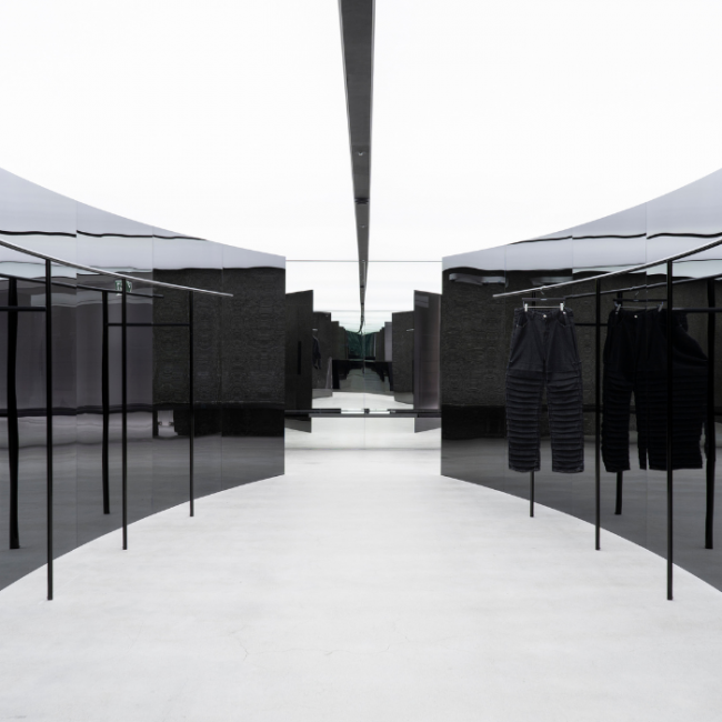 Le flagship SSENSE a été conçu par David Chipperfield Architects. Un espace de 1 200 m2 datant du XIXe siècle construit comme « un bâtiment dans un bâtiment », adjacent à l’iconique basilique Notre-Dame de Montréal. La façade ancienne de l’enseigne contraste avec la modernité de l’intérieur. Les murs et les espaces d’essayage situés aux 3e et 4e étages sont faits d’acier, éclairés par des spots fixés à des grilles, donnant un effet SF au lieu. Les produits présentés changent régulièrement, comme sur ssense.com. La boutique joue entre physique et digital pour un résultat phygital hors du commun.
