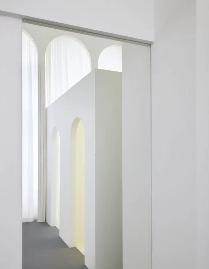 Côté architecture, les arcades, d’où descendent les luminaires « Eole », prédominent. Un ensemble doux et apaisant, complété par une sélection de pièces d’art antiques et d’oeuvres contemporaines telles que les sculptures de Nicolas Lefebvre, Laëtitia de Bazelaire et Thomas Junghans.