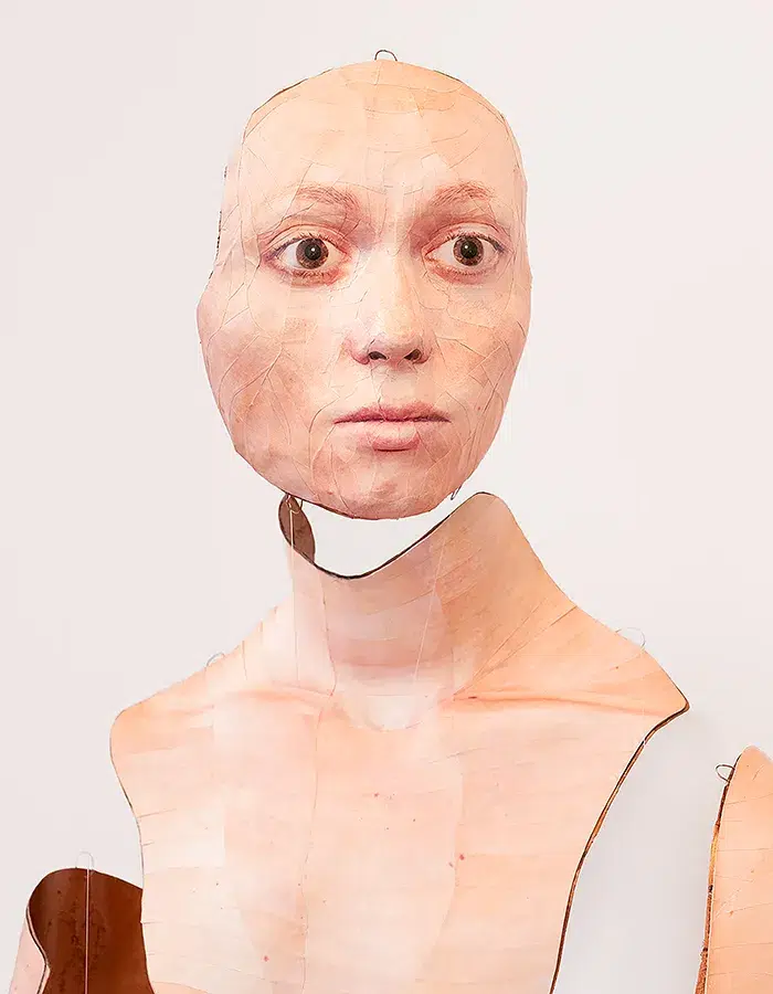 Cette approche se prolonge dans les œuvres sculpturales et les installations, qui apportent une dimension presque corporelle à l’exposition. Les volumes, les textures et les matériaux prolongent la réflexion sur la présence et l’absence, sur ce qui est visible et ce qui ne l’est pas. Le corps n’est jamais représenté comme un objet stable, mais comme un processus, traversé par des tensions contradictoires : force et fragilité, exposition et protection, affirmation et effacement.