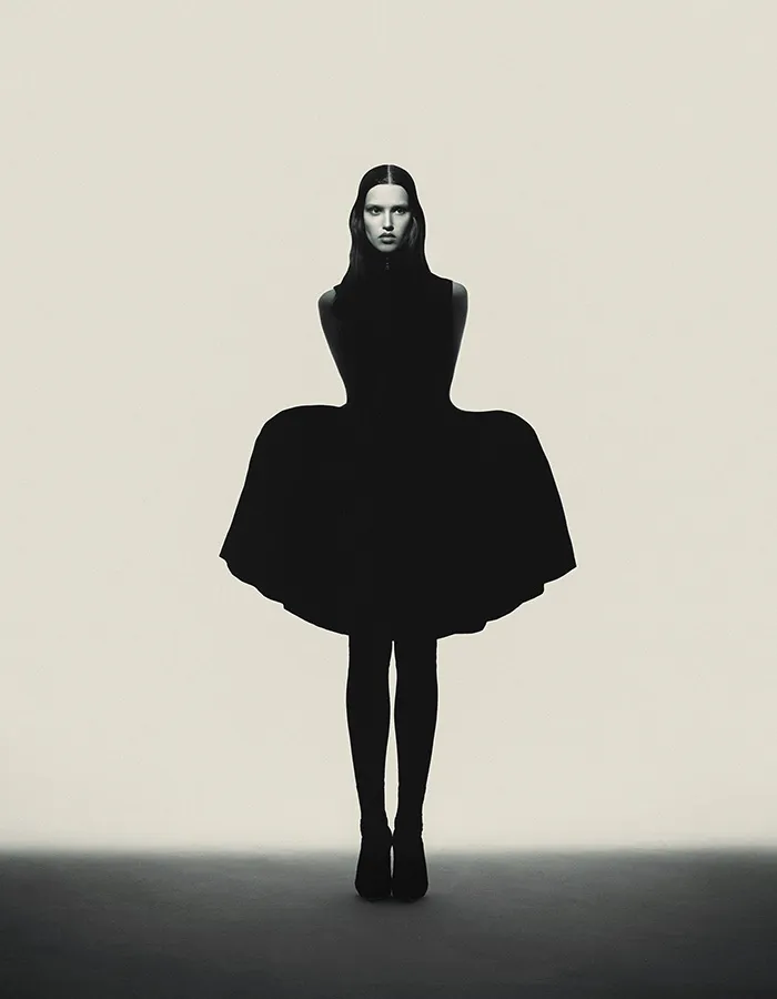 Il ne s’agit pas de séduire avec des tenues ou des visages : il s’agit de bâtir des images où le vêtement dicte la composition, où il devient l’armature d’une vision. Une vision qui interroge notre rapport à la forme, au corps, à l’espace.
