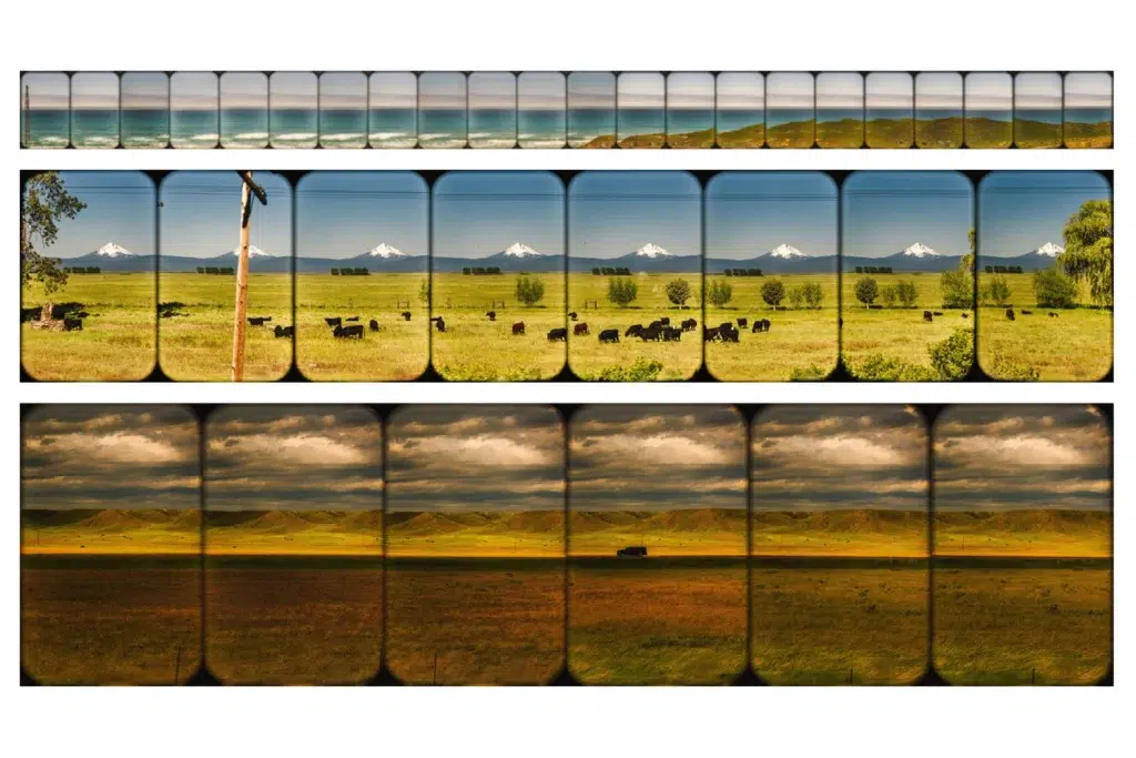 Katie Edwards prend ensuite de la distance par rapport à son sujet et examine l’ensemble à travers des panoramas d’images. Une seule englobe l’entièreté de son aventure sur rail, narrant ainsi une belle histoire du temps et de l’espace, du mouvement et de l’instant. « Si cette mosaïque du voyage était une page d’un livre, alors les fenêtres individuelles du train seraient les mots qui forment des phrases, puis des paragraphes. »