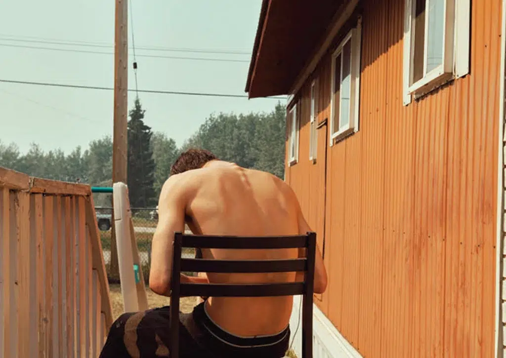Une route dans un Blizzard bleuté, un gros plan sur une cabine téléphonique, une pompe à essence ou l’enseigne d’un motel éclairé d’une lumière rouge, comme la trace d’une roue dans la neige paraissant ensanglantée… comme les doigts d’une main elle aussi prise en gros plan… Rouge également comme le Skaï d’un fauteuil vide de voiture pris, lui aussi, en gros plan, ou les dossiers auxquels s’agrippe un homme au regard perdu… Procédant par leitmotiv, échos et répétitions, la photographie de Kourtney Roy (née en 1981) est intrinsèquement obsédante parce que esthétiquement obsessionnelle. Obsessionnelle à travers les motifs (routes désertées, enseignes, ciels, nuits, brouillards, neige…), les couleurs (où prédominent le rouge sang et le bleu piscine) et les cadrages (essentiellement en plans rapprochés ou extra larges).