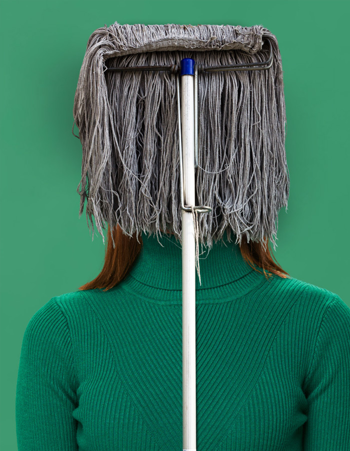 La collagiste combine portraits vintage, nourriture et objets pour des associations improbables et surréalistes entre humour et tragédie. « En surface, cette combinaison absurde semble rejeter toute forme de raison (une extension de mon propre sens de l’humour tordu) », explique-t-elle. « Cependant, occulter les visages avec des aliments se veut non seulement défier les notions traditionnelles d’esthétique, mais aussi provoquer, taquiner et déstabiliser le regardeur. » Couple à têtes d’oeufs au plat, papier toilette sur jeunes mariés, visages en forme de seau, de Rubik’s cube, de slip, de boule de glace, de serpillère, de poulet, de brocolis…