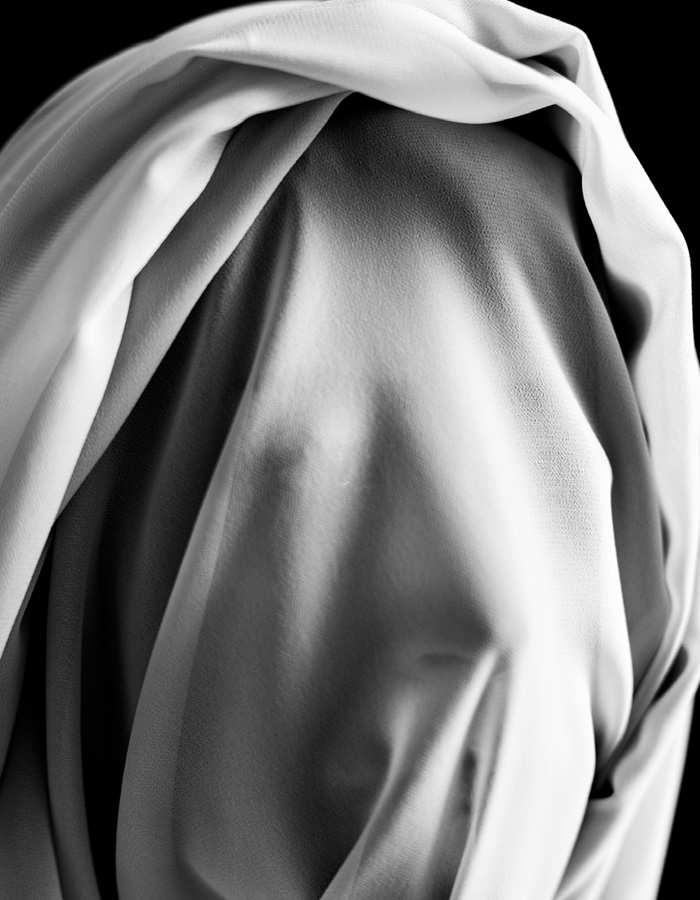 C’est ainsi que nous avons été subjugués par la très grande sensualité de ce visage voilé photographié en gros plan par Judith Stenneken 2 montré à la Marshall Gallery (Santa Monica). Jouant à la fois de la proximité par le choix d’un cadrage très serré et de l’éloignement par l’usage du noir et blanc donnant à l’ensemble un aspect marmoréen, la photographe parvient presque à faire sentir le souffle traverser le voile.