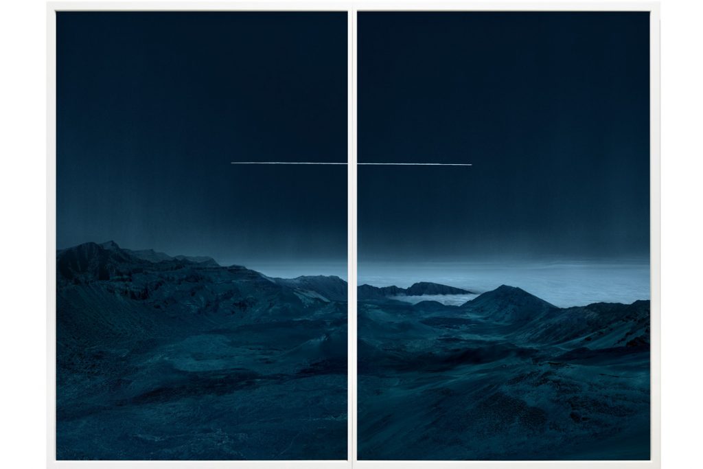 Énigmatiques encore, les paysages de David De Beyter de la Galerie Bacqueville (Lille) réexploitant les stigmates de photographies d’archives ayant servi à la construction de la mythologie des ovnis : tache éblouissante, griffures transformées en traits lumineux… Explorant les frontières entre réalité et fiction, ses paysages ufologiques 4 irradiants issus de sa série Les Sceptiques nous interrogent quant à l’obsolescence programmée de nombre de nos croyances fondées sur la seule puissance illusoire de l’image…