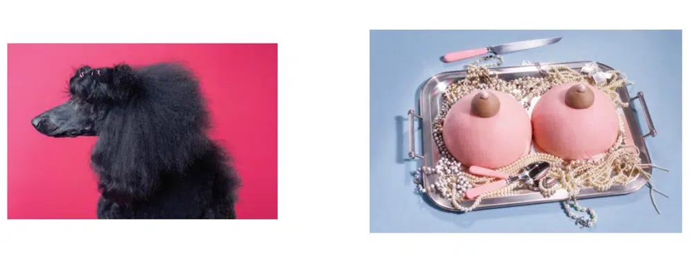 Toute l’iconographie découle ici des multiples commanditaires pour lesquels il a travaillé et dont de nombreuses images ont été tirées. Philippe Jarrigeon a collaboré avec des maisons de luxe (Chanel, Roger Vivier, Louis Vuitton…), des artistes de l’industrie musicale (Snoop Dogg…) et des magazines (Vogue, Double, Purple, PIN-UP Magazine…). Cet adepte du pas de côté a toujours été « fasciné par le dispositif de la vitrine », comme il le formule dans l’interview imprimée dans un fascicule, inclus dans le livre. Ici, il sublime, fait pulser et même exalte la diversité de son travail et crée son propre jeu avec un enchaînement d’images propre à un « zapping » télévisuel.