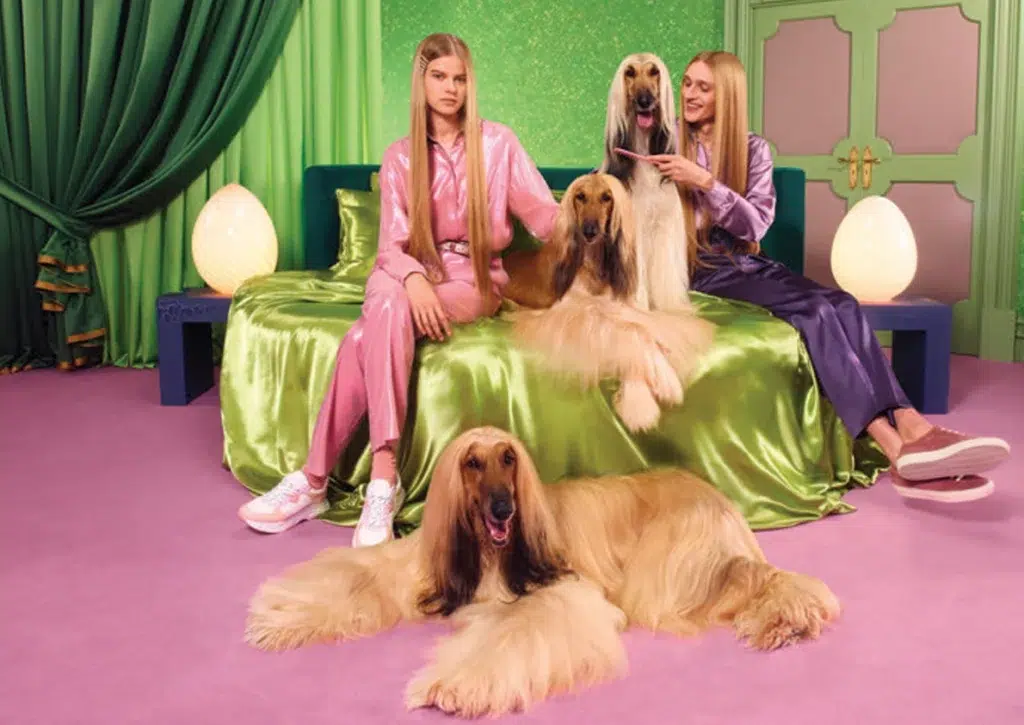 Pour cerner la vision toute particulière du style de Philippe Jarrigeon, PLAY en est le parangon. Vu comme la parodie d’un grand studio hollywoodien, le premier livre grand format du photographe français de 40 ans, passé par l’école cantonale d’art de Lausanne (ECAL), nous invite dans l’univers de la télévision et du cinéma des années 1990. Ici, sarcasme et fantasme sont rois. Entre portraits, natures mortes, paysages, architecture et mode, son imagerie bigarrée montre son attention aux détails, son goût pour les diptyques et sa sensibilité particulière à l’objet. Philippe Jarrigeon s’amuse avec le terme polysémique du titre, offrant différents niveaux de lecture qui viennent ainsi englober quinze années d’expérience. Dans cette bibliothèque mentale et visuelle, où « tout semble déviant », il convoque Beetlejuice, l’héroïne de Vertigo, la mante religieuse de Microcosmos ou encore Cher Horowitz de Clueless. Mais il invite aussi des lévriers afghans en compagnie de femmes sur un lit baroque, tout en dégainant son pistolet doré, armé d’un tube de rouge à lèvres.