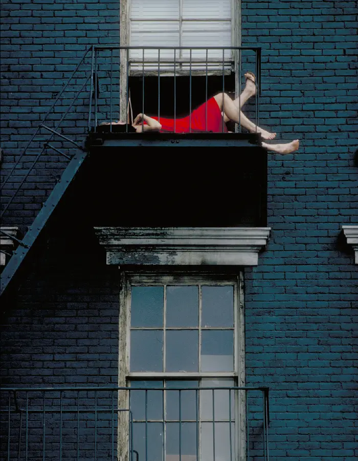 Dans sa série Twilight Zone, l’artiste s’est glissée dans les salles de musées contemporains privés d’œuvres, laissant l’architecture et la lumière composer seules. À Paris Photo, ses vues du Grand Palais (arcs et escaliers baignant dans une pénombre bleutée) côtoient d’autres intérieurs nocturnes – façades vitrées, couloirs silencieux, reflets urbains.